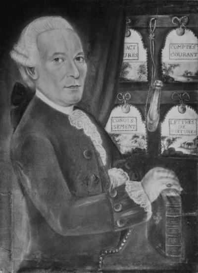 "Le fondateur Jean Guy GAUTIER dans son comptoir vers 1698" >